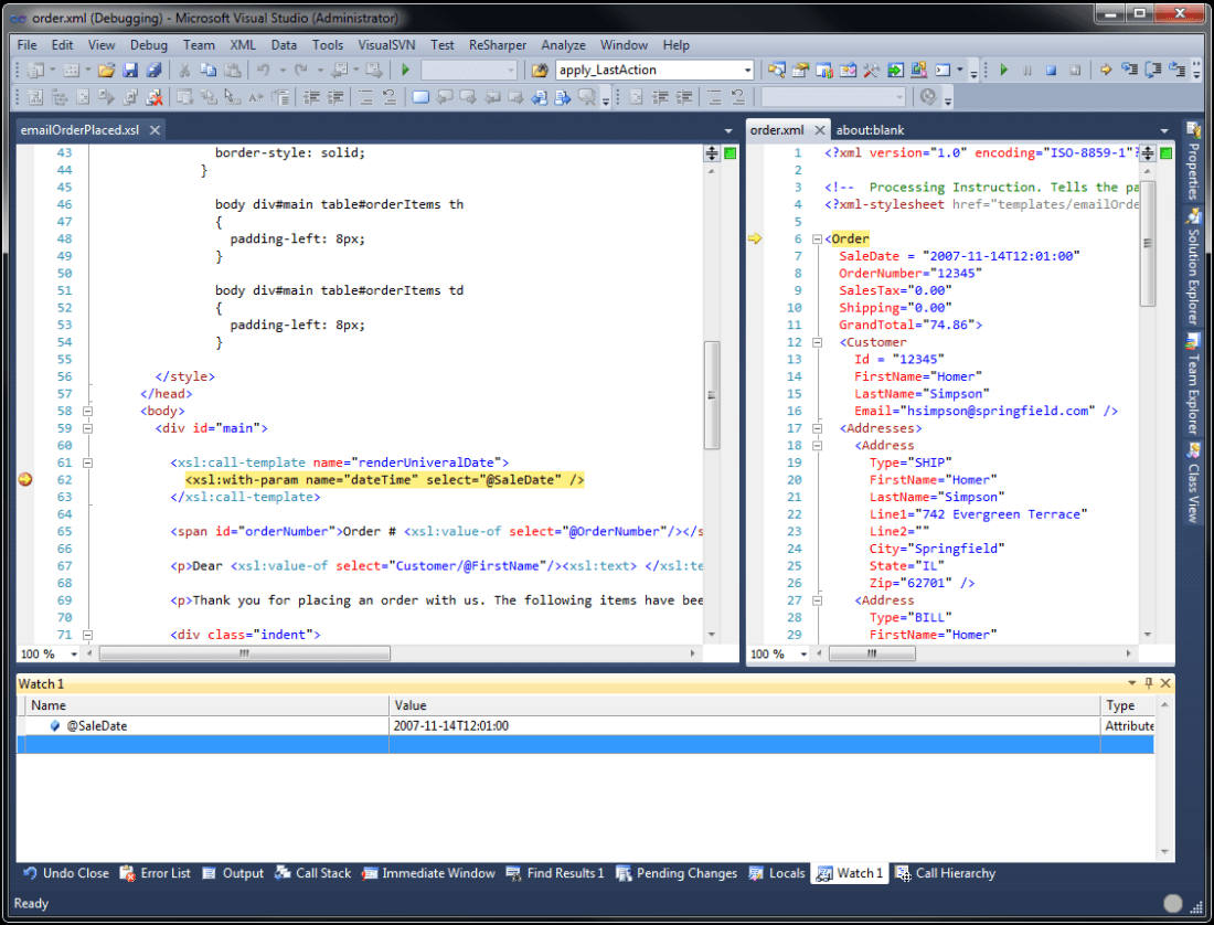Debugging an XSL Tranformation using Visual Studio