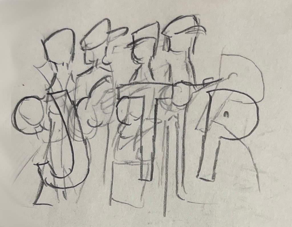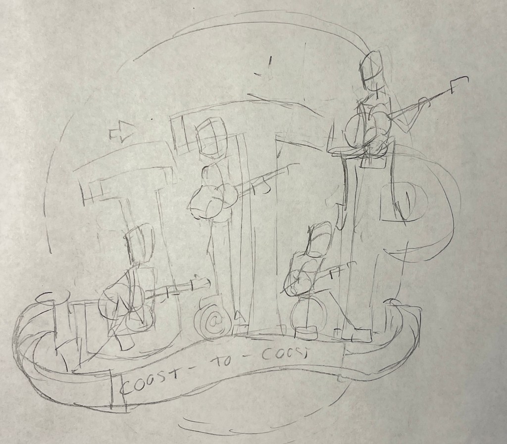 My friend, John, reached out to me and asked if I’d be interested in drawing him a logo for his band, J.T.P. As luck would have it they were all in town and planned on having a series of rehersals in John’s living room.
